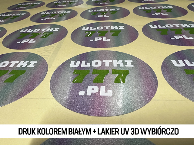 Jeśli szukasz w Warszawie drukarni drukującej na foliach samoprzylepnych / naklejkach kolorem białym lub lakierem UV wybiórczo to trafiłeś idealnie. Drukujemy w technologii UV led na ploterze Roland UG-641 wyłącznie na oryginalnych tuszach Roland.