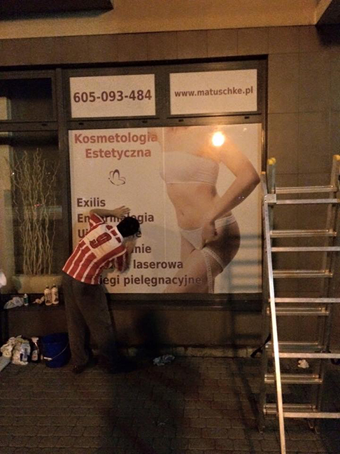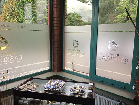 Wyklejamy na zamówienie witryny foliami OWV, samoprzylepnymi, matowymi, mrożonymi, plotowanymi – wycena przygotowywana indywidualnie tel. 510 567 777