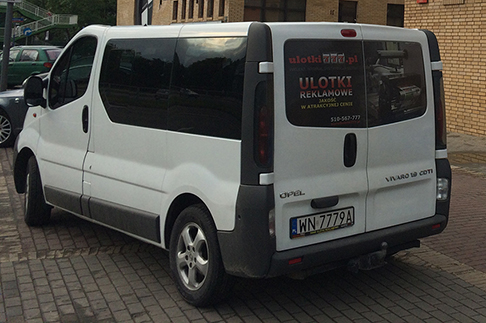 Folia OWV perforowana przeznaczona do wyklejania na szybach pojazdów lub witryn sklepowych.