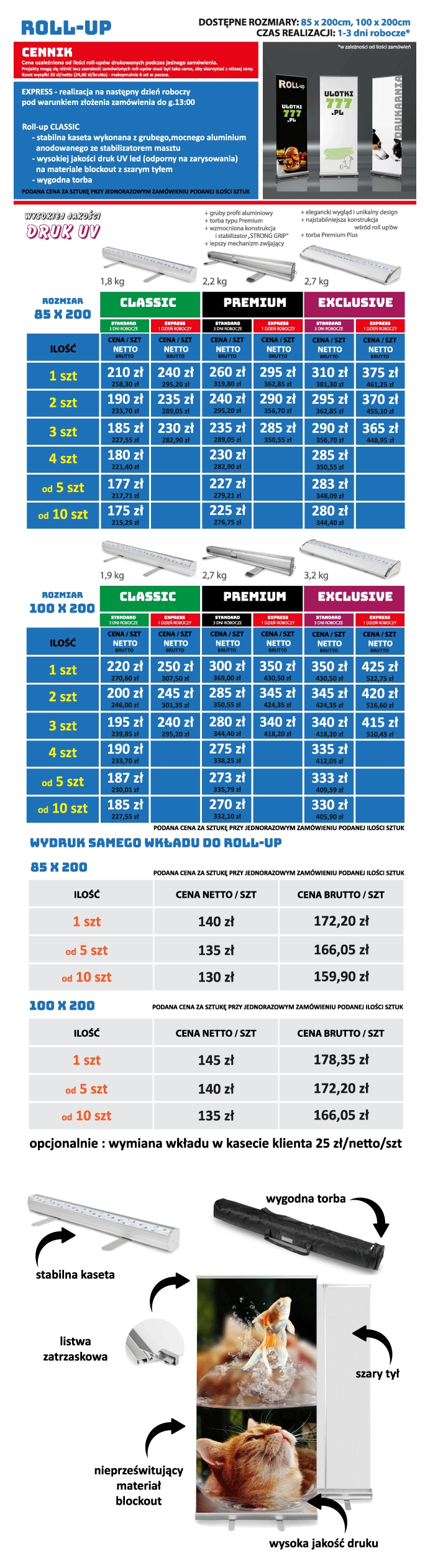 TANIE Rollupy Warszawa – najwyższa jakość – tak to możliwe – sprawdź naszą firmę i zamów z odbiorem osobistym w Warszawie lub dostawą kurierem w dowolne miejsce w PL.