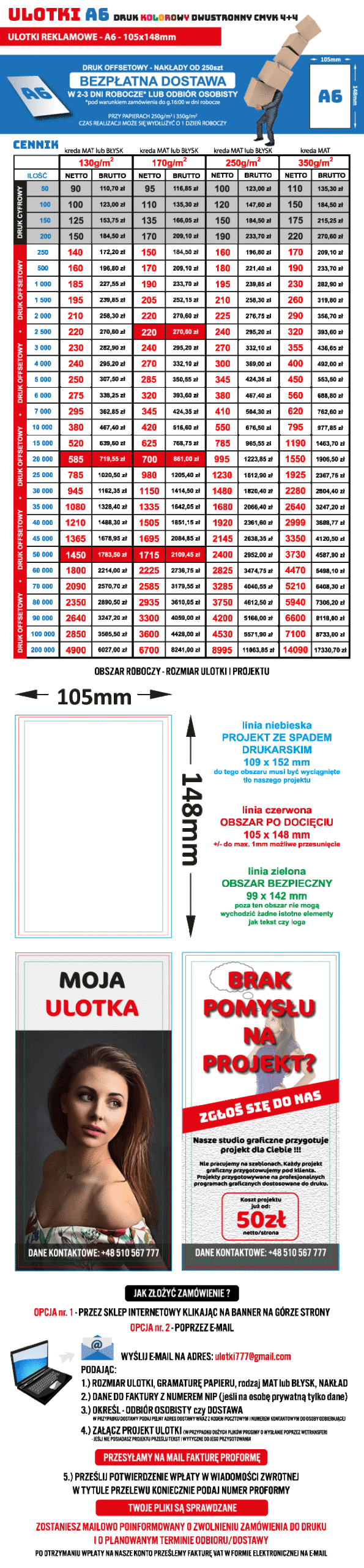 Zamówienia prosimy składać na adres mailowy ulotki777@gmail.com