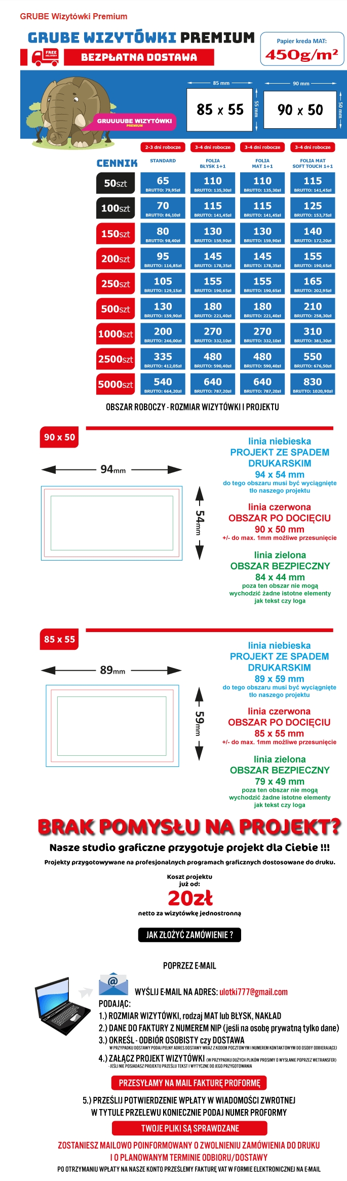Zamówienia prosimy składać na adres mailowy ulotki777@gmail.com