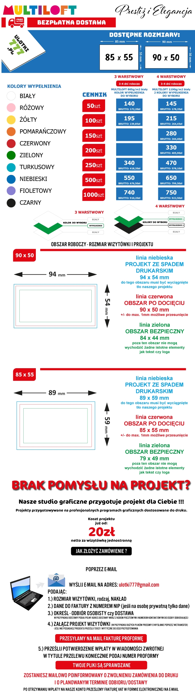 Zamówienia prosimy składać na adres mailowy ulotki777@gmail.com