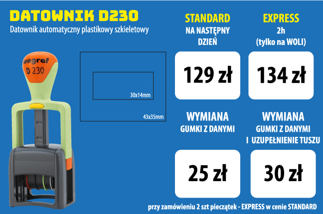 W obu naszych punktach zamówisz i odbierzesz datownik.