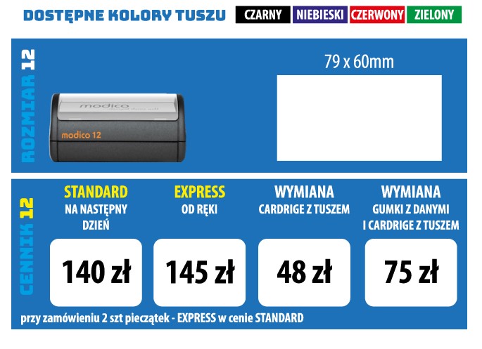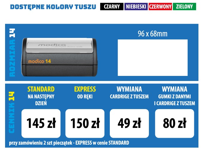 Ceny cardrige podane powyżej przy poszczególnych rozmiarach pieczątek Modico.