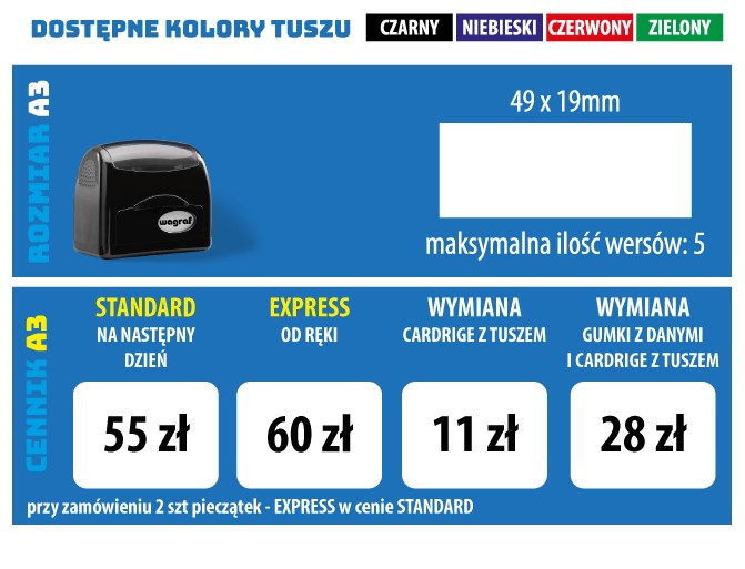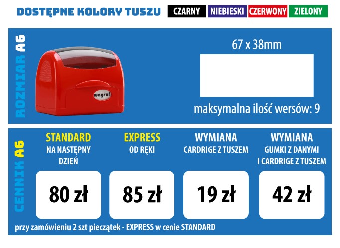 Ceny cardrige podane powyżej przy poszczególnych rozmiarach pieczątek Wagraf.