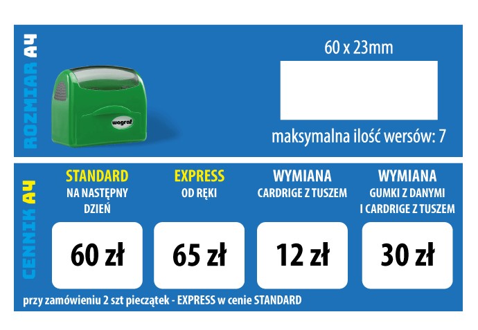 Przy zamówieniu 2 pieczątek – na wykonanie EXPRESS w cenie STANDARD