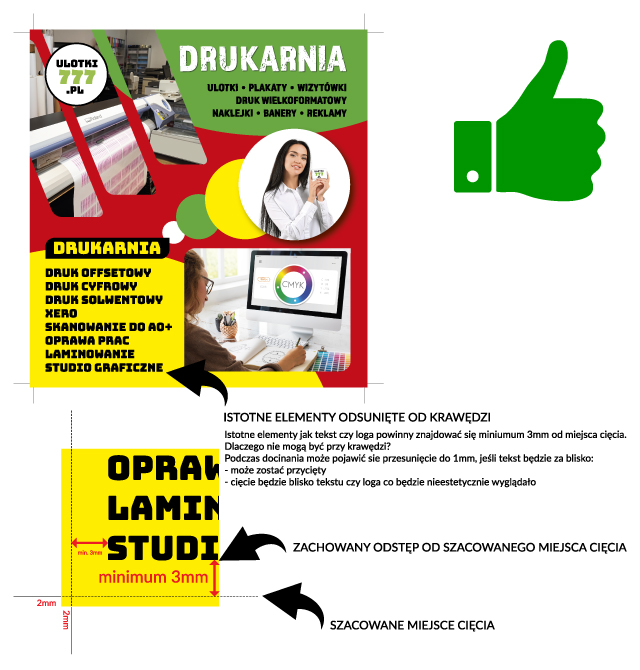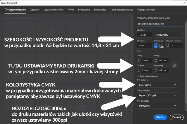 Spad drukarski dodajemy w projekcie aby po docięciu grafika tła np. na naszej ulotce była do samej krawędzi.